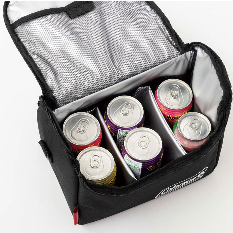 350mL缶が6本入るたっぷりサイズ。お弁当を入れても余裕の大きさです。