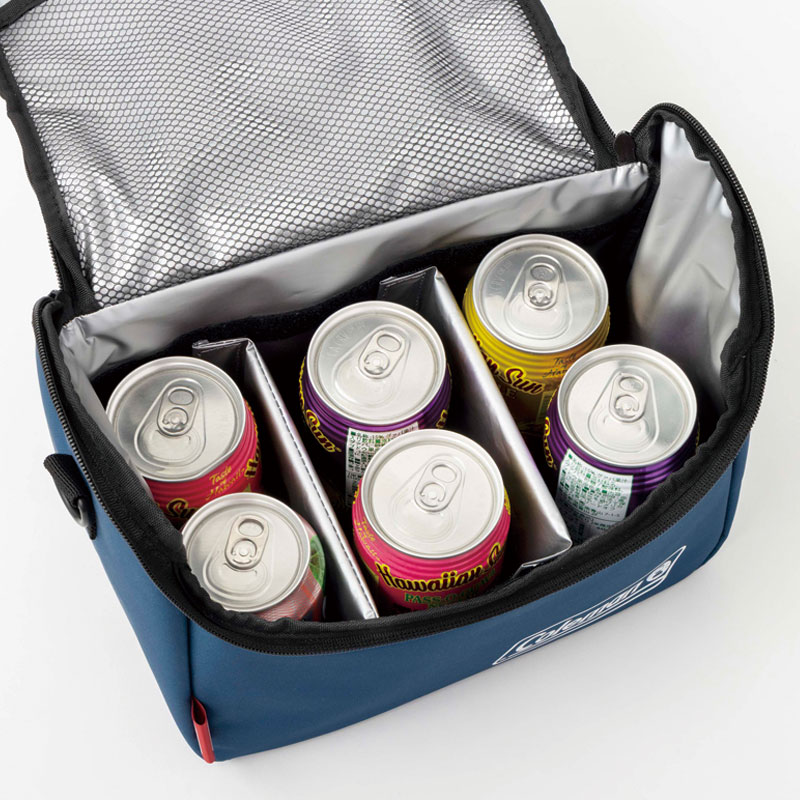 350mL缶が6本入るたっぷりサイズ。お弁当を入れても余裕の大きさです。