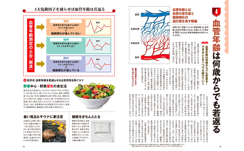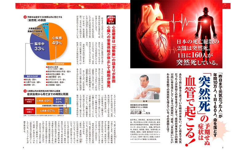 名医・博士15名の最新研究からわかった! 心筋梗塞・心不全・脳梗塞・脳出血……怖い突然死を防ぐ最強の特効法! 加齢とともに血管は弾力を失い、血管年齢が高くなるほど突然死のリスクは高まります。本誌では、切れない、つまらない、消えてしまった血管をよみがえらせる、硬くなった血管をしなやかに若返らせる最新ワザを15名の名医・博士に徹底取材。今すぐ簡単に実践できる「食事」「生活習慣」「運動」をわかりやすく解説します。