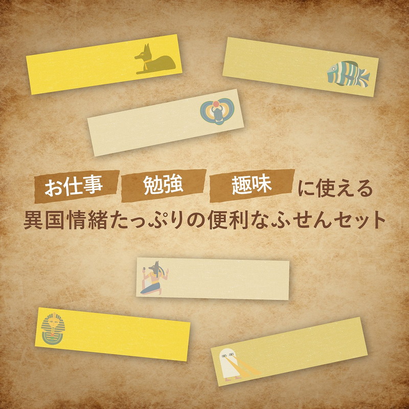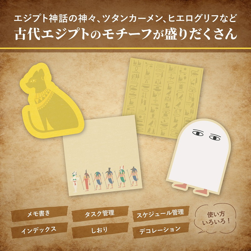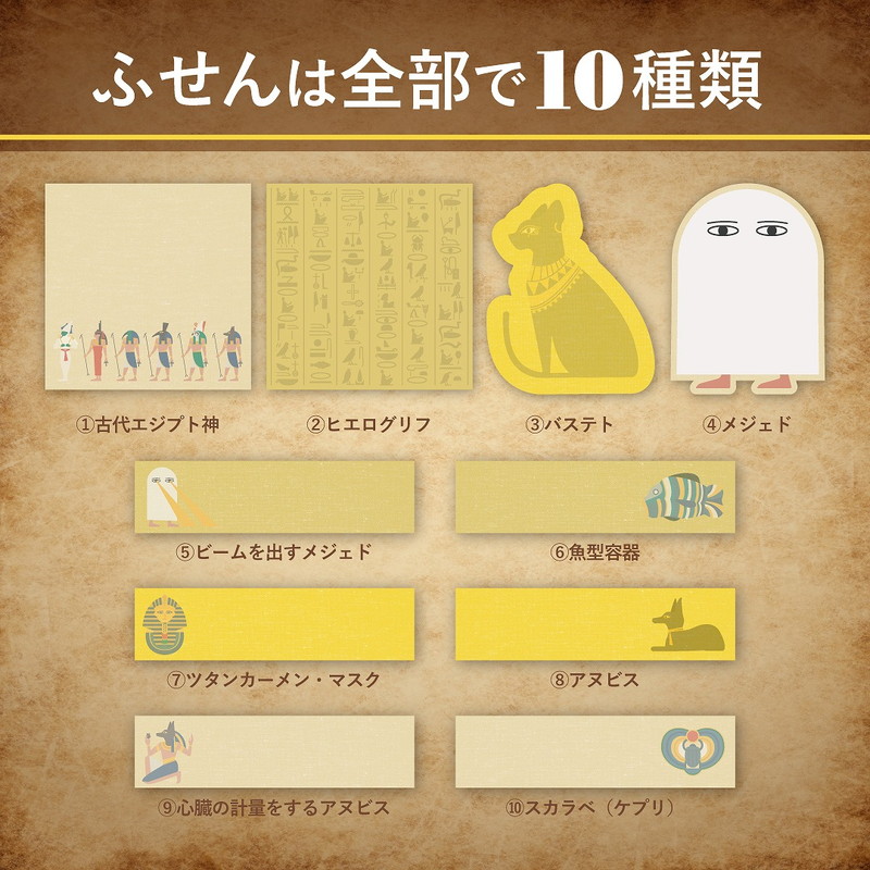 古代エジプトの神々が彩る、異国情緒あふれるふせんは全部で10種類。