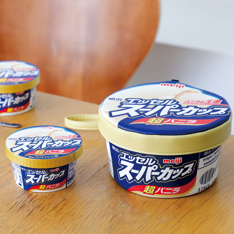 バニラアイスの定番「明治 エッセル スーパーカップ 超バニラ」の誕生30周年を記念して、本物そっくりなポーチを作りました!
