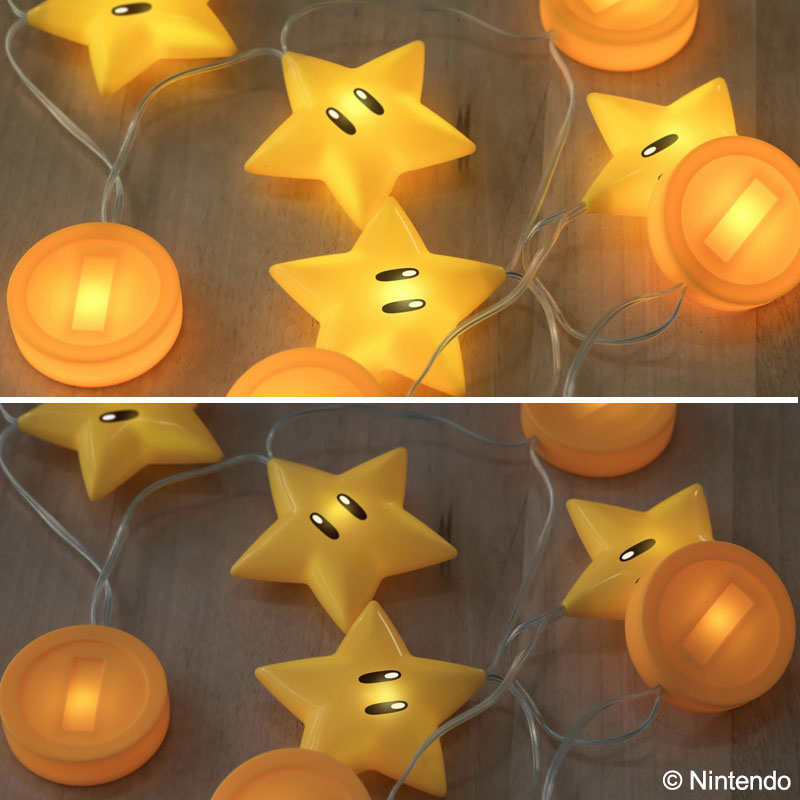 「スーパーマリオ」のスーパースターとコインがガーランドライトになって登場!