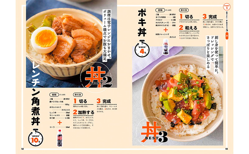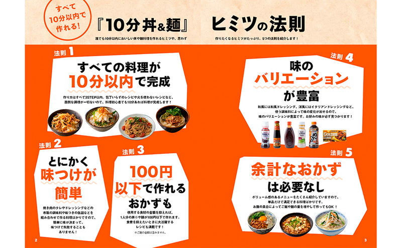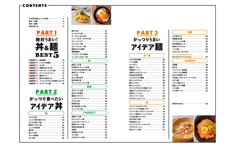 ズボラ飯の元祖「10分」レシピシリーズの中でも特に人気が高く13万部超の「10分丼」が、10分でできる麺レシピを加えて全面リニューアルして登場!!