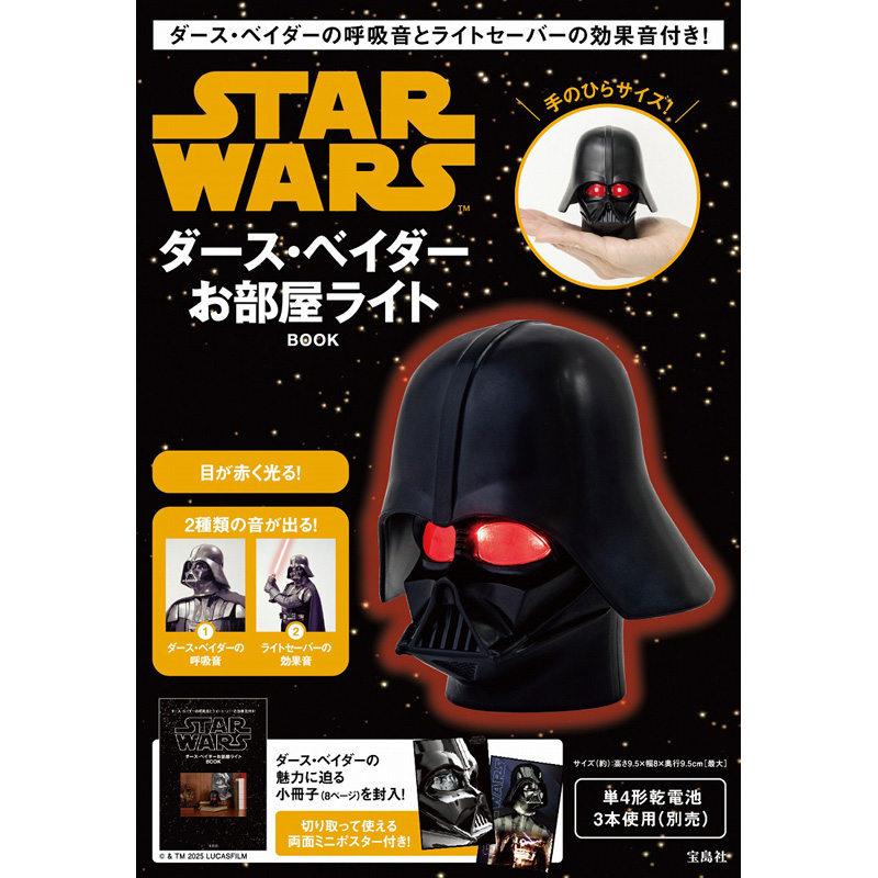 ダース・ベイダーの目が赤く光り、呼吸音とライトセーバーの効果音が流れる本格仕様で映画さながらの臨場感が楽しめます。
