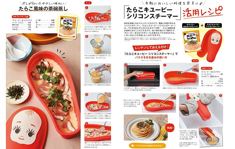 誌面では「キユーピー あえるパスタソース」×シリコンスチーマーを使ったレシピを大特集。