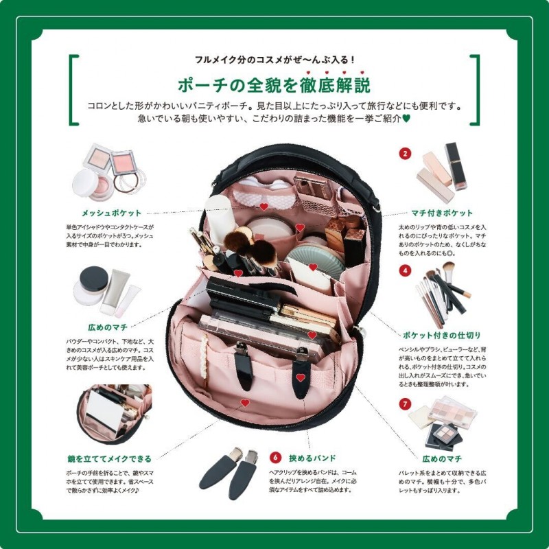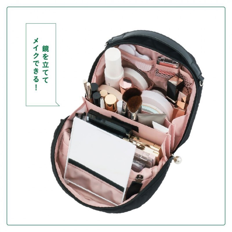 ラウンド型が珍しいバニティポーチは、理想の収納が叶う優れもの。