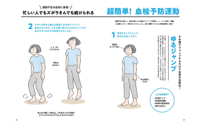 食事に加えて、血管の健康維持に欠かせないのが運動。その場でジャンプするだけで、血管が若返るって知っていますか? 監修・伊賀瀬道也先生が考案した「ゆるジャンプ」を始めとした、簡単エクササイズをご紹介。今日から5分始めるだけでも体は変われます!