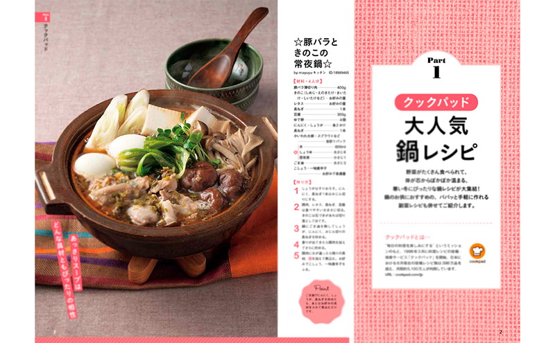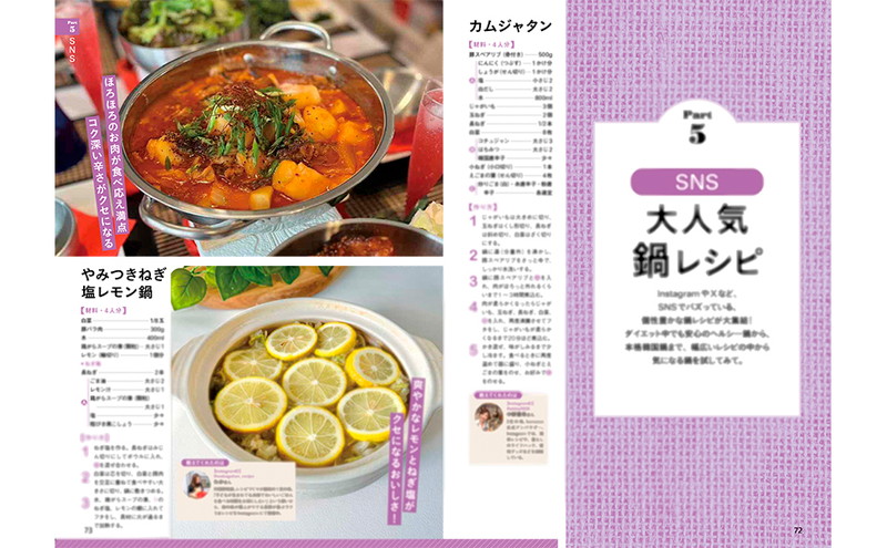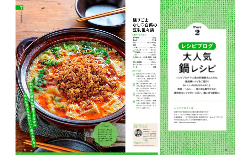 本誌は、料理投稿サイト「クックパッド」、料理ブログサイト「レシピブログ」、料理動画サイト「DELISH KITCHEN」、レシピ動画&グルメニュースサイト「マカロニ」から、反響の大きかったもの、アイデアやテクニックが光る鍋レシピを厳選して紹介します。今晩食べたい鍋が必ず見つかりますよ。
