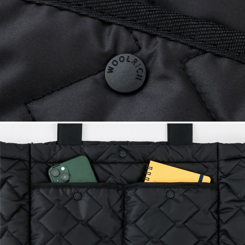 ウールリッチのダウンジャケットをイメージしたキルティング生地やブランドロゴが刻印されたスナップボタンなど、細部までこだわった仕様になっています。