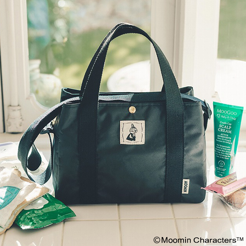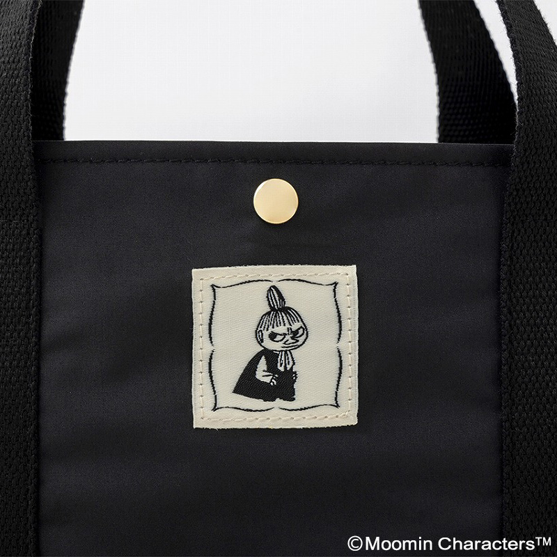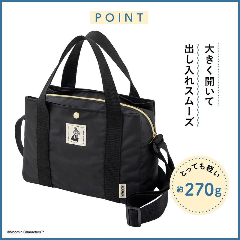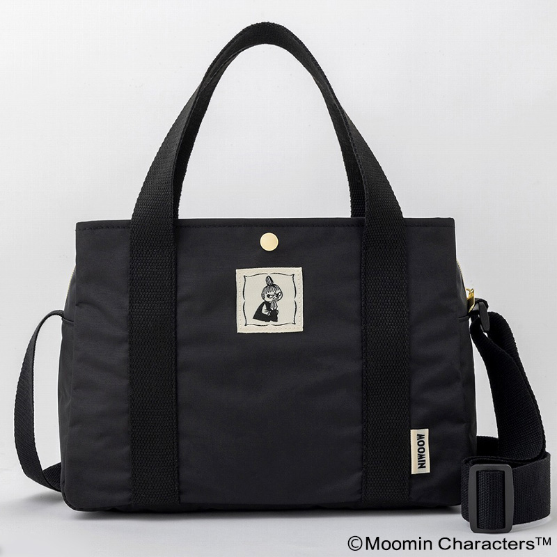 シックなモノトーンのリトルミイの織りタグがおしゃれなショルダーバッグ。収納部が3層に分かれていて、すっきり収納できるのが嬉しいポイント。