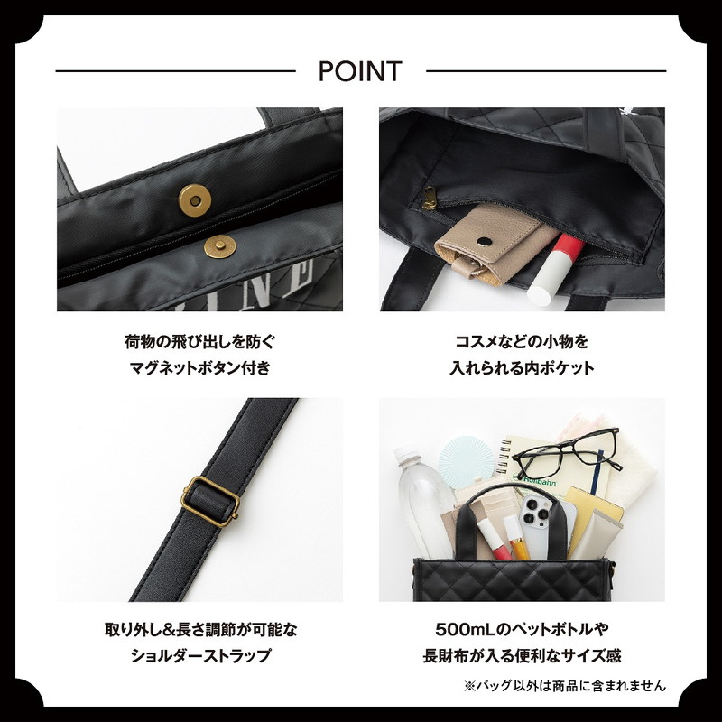 人気のブックトートを本誌限定サイズにアレンジしたキルティングバッグを3種同時に発売します。