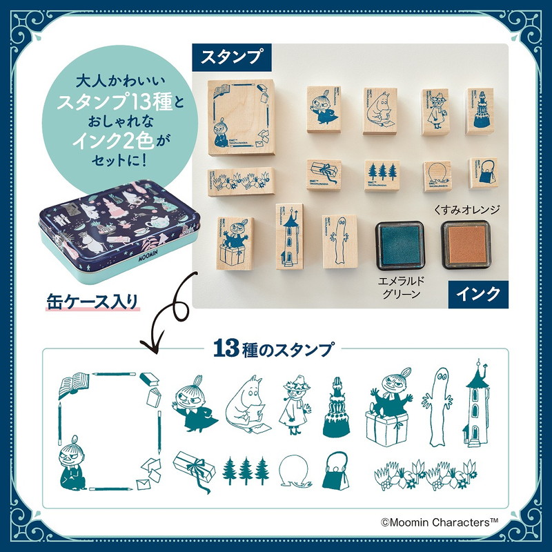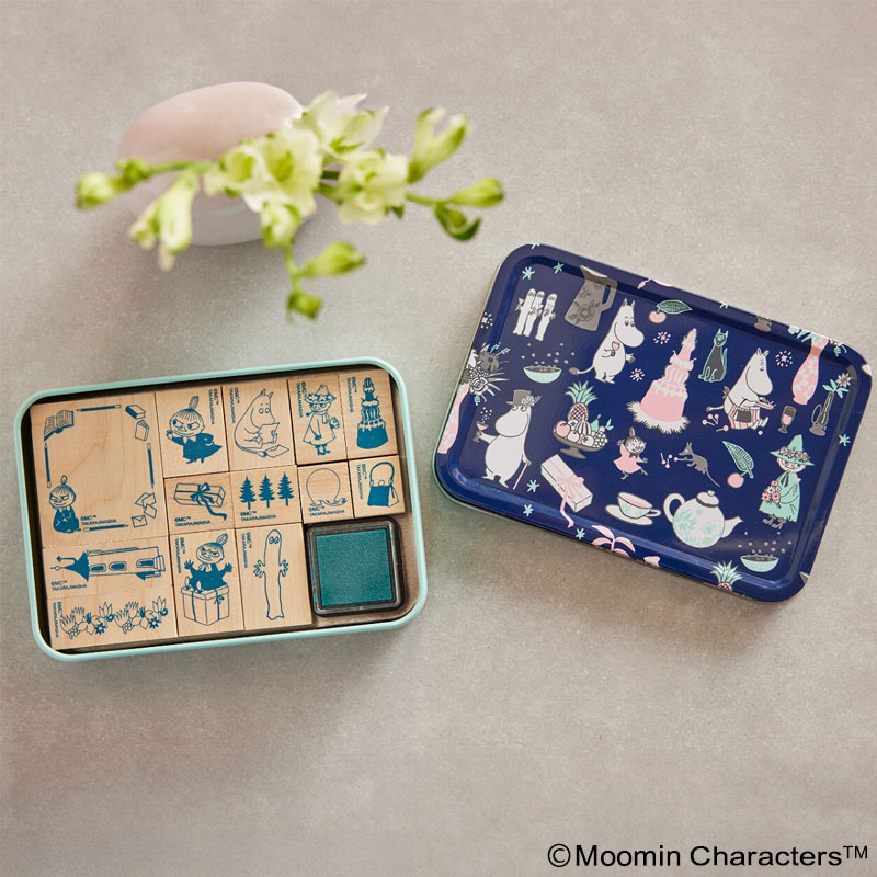 メッセージカードや手帳にポンと押すだけで、ムーミンと仲間たちがおしゃれに彩ってくれます。