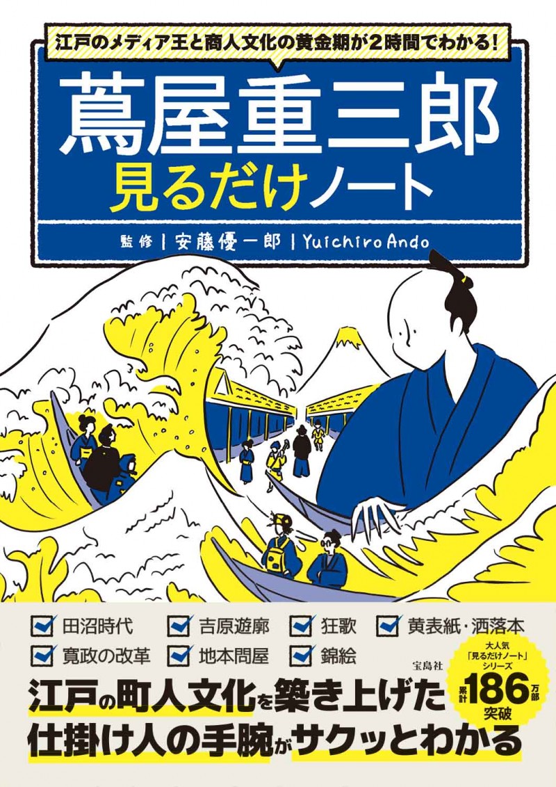 蔦屋重三郎、喜多川歌麿、葛飾北斎、曲亭馬琴、十返舎一九といった登場人物の織り成す人間模様、田沼意次、松平定信による政策、社会情勢を多角的に図解、商人文化の黄金期を浮き彫りにします。