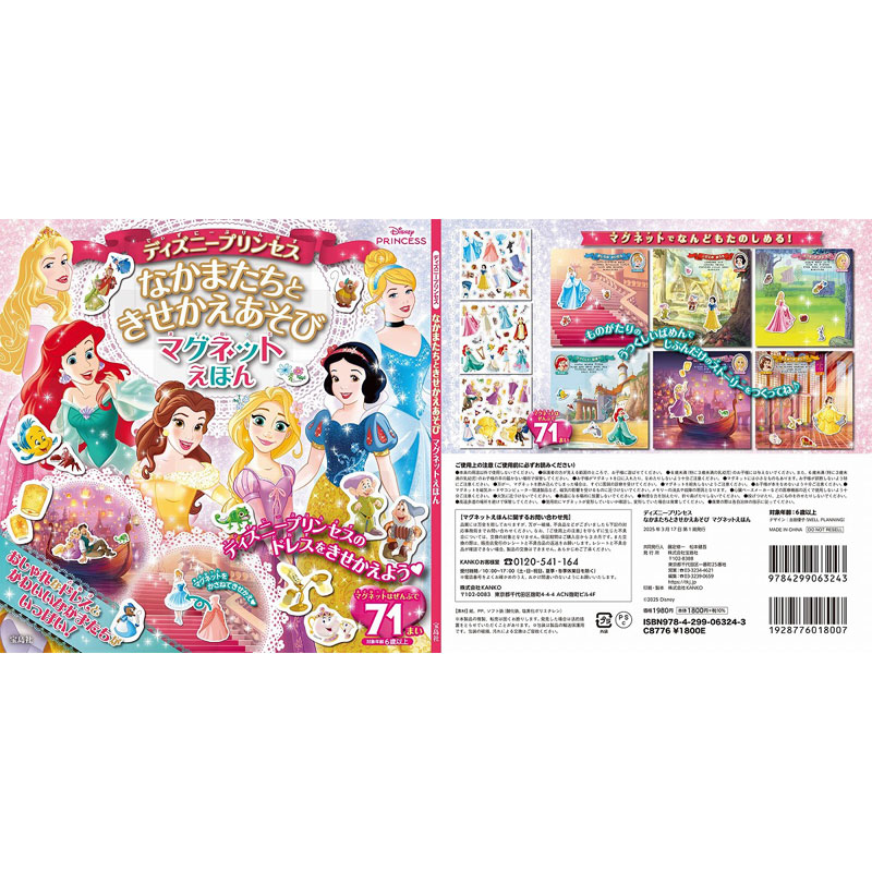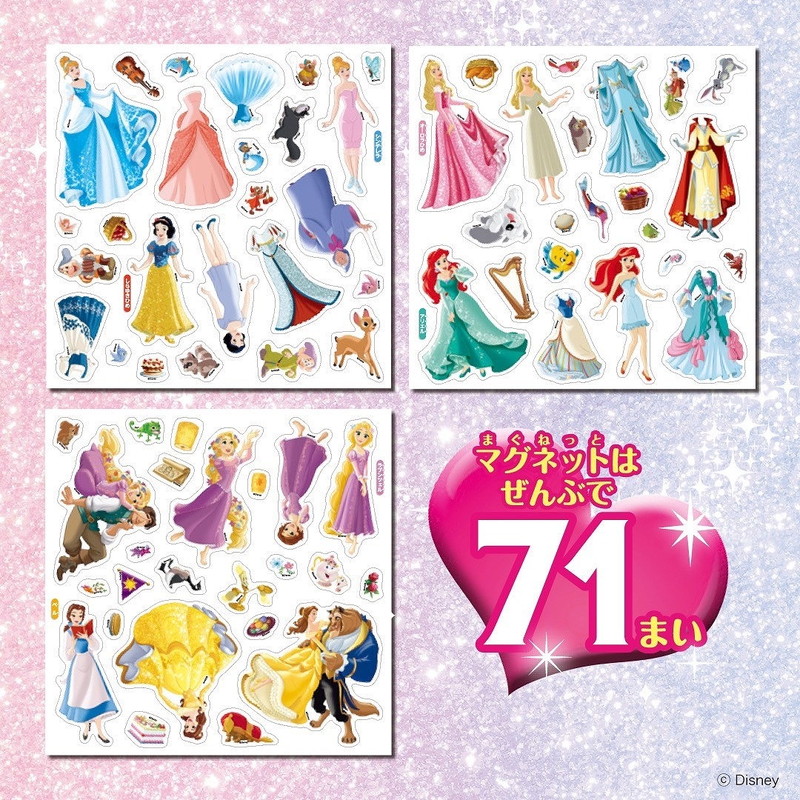 マグネットのパーツは、6人のプリンセスと、おしゃれでかわいいドレス、なかまたちなど、71枚収録。
