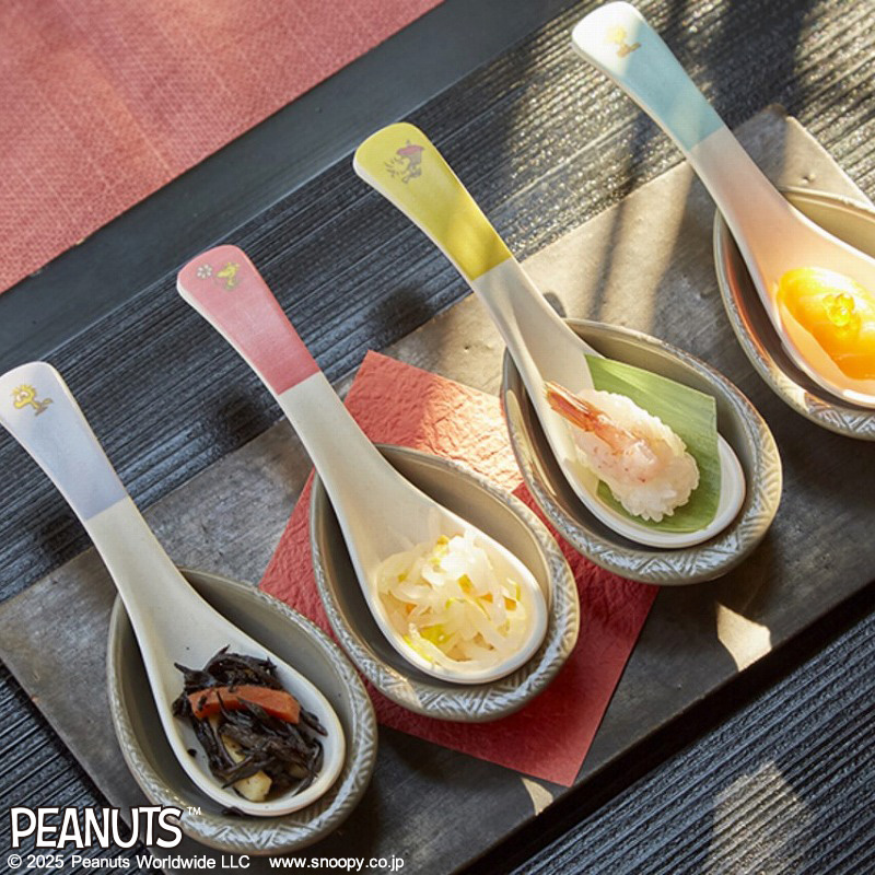 PEANUTS誕生75周年を記念したアニバーサリーデザインのレンゲ4本セット。