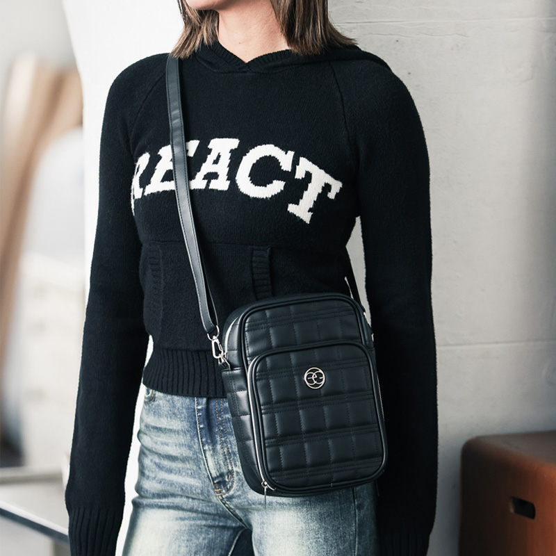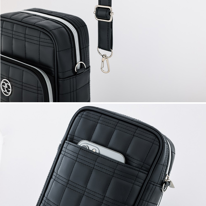 レザー調のキルティングとシルバーに光るEGロゴでクールかつ高級感のあるデザインです。