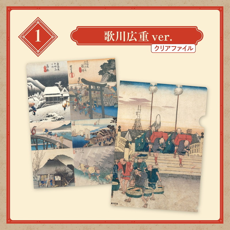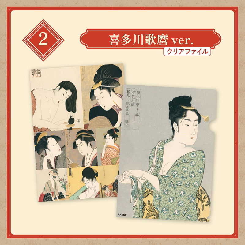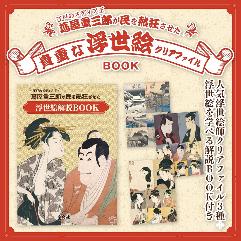 お求めやすい価格で、喜多川歌麿、東洲斎写楽、歌川広重の作品から厳選した人気作品のクリアファイルと解説BOOKが入手できます。