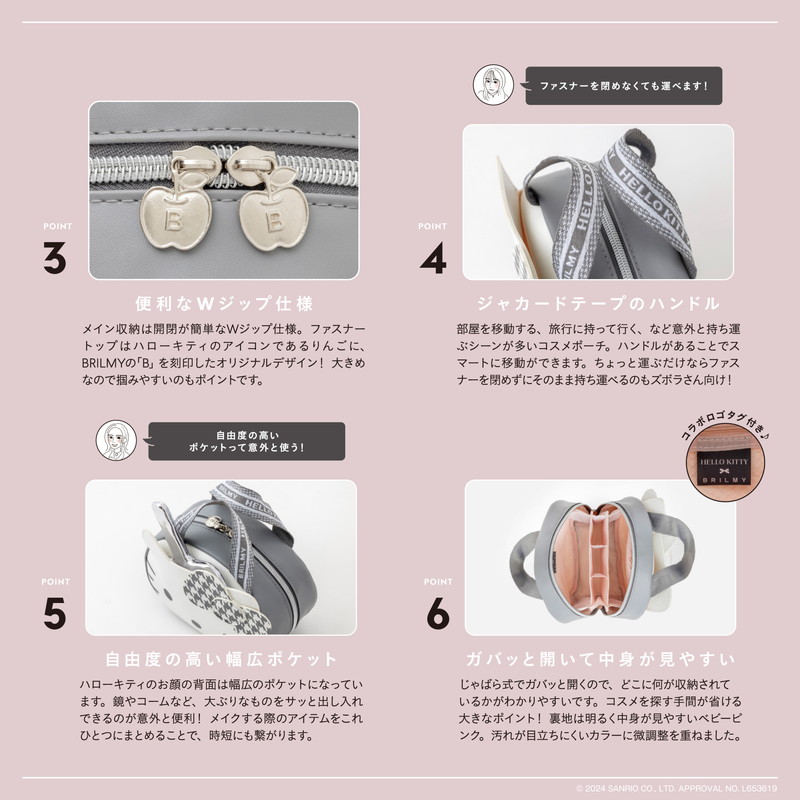 ファスナートップはハローキティのアイコンであるりんごに、BRILMYの「B」を刻印したオリジナルデザイン!