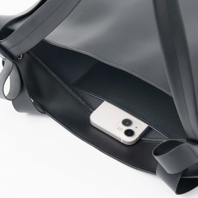 開口部がファスナーになっていたりスマホ・鍵などを入れるのに便利な内ポケットがついていたりと、シンプルながら使いやすさにもこだわりました。