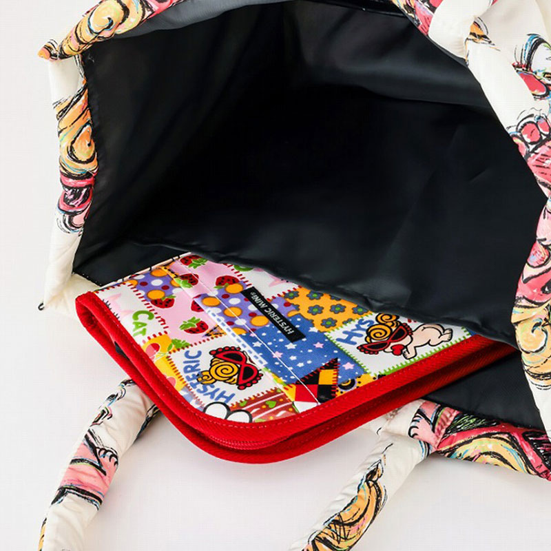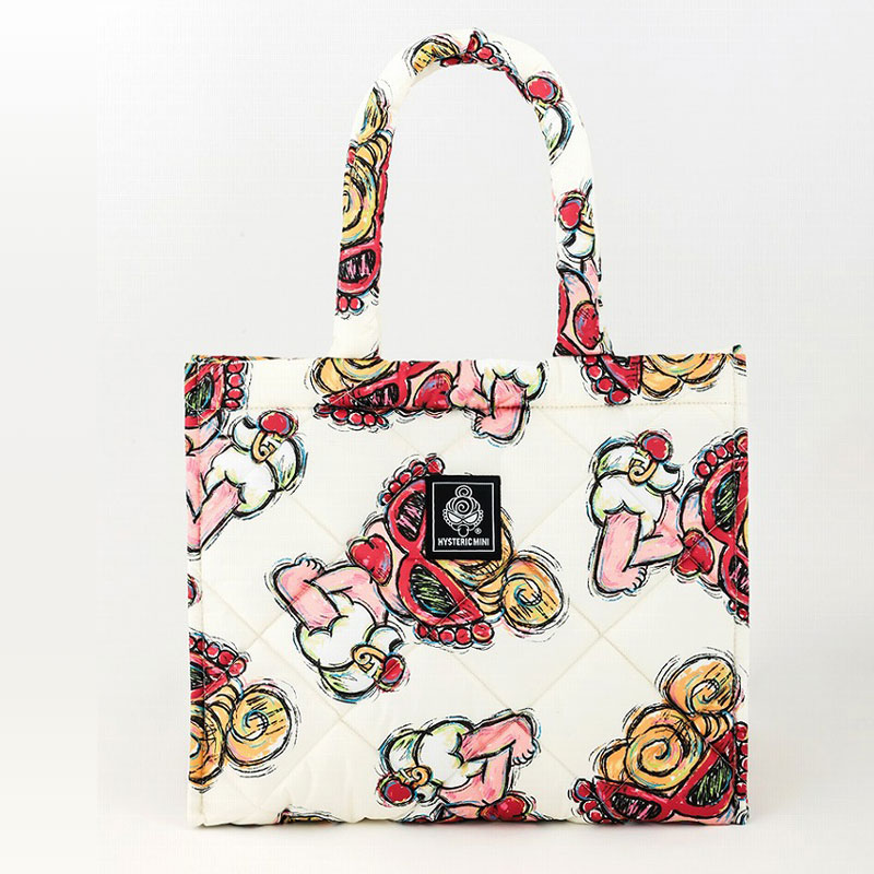 ふんわり軽いキルティング素材のバッグに、MINIちゃんの手描き風プリントが可愛いトートバッグ。形崩れしにくい、しっかりとしたスクエア型が使いやすくておしゃれなアイテムです。