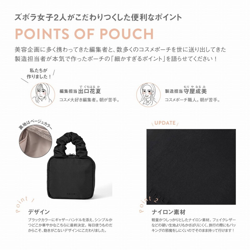 上部がデッドスペースになりがちなコスメポーチ。上から物を重ねていくことによって整理が困難に……。ポケットを付けることでお悩みを解消!