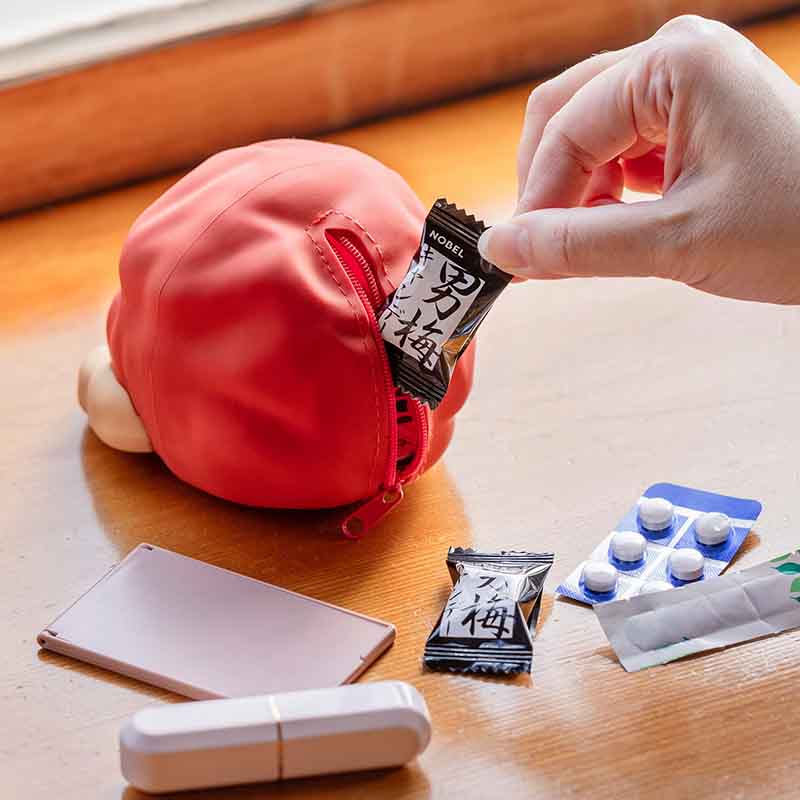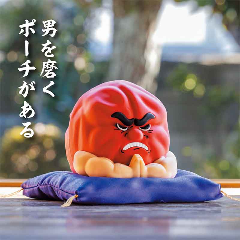 人気キャラクター「男梅蔵」をリアルに再現したシリコンポーチは、シワの細部までこだわりがつまった360度どこから見ても楽しめるアイテムです。