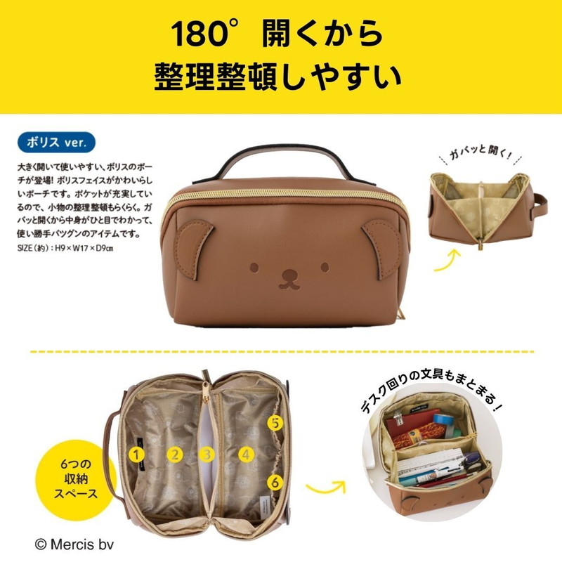 裏地は、ミッフィーとボリスやさまざまな花をちりばめたキュートな総柄を使用。デザインと機能性を兼ね備えた、うれしいボックスポーチです。
