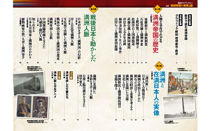 崩壊から80年を数える巨大な実験場・満洲国! 満鉄・満映・関東軍をはじめとした満洲の組織、そして、戦後の高度経済成長を支えた「満洲人脈」。「五族協和」のスローガンのもと、幻の国家に暗躍した謎多き人物たちを糸口に、豊富なビジュアルで満洲帝国を読み解く。