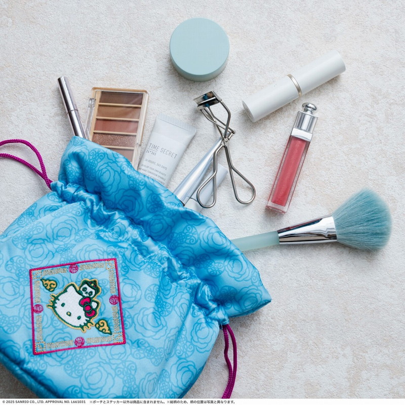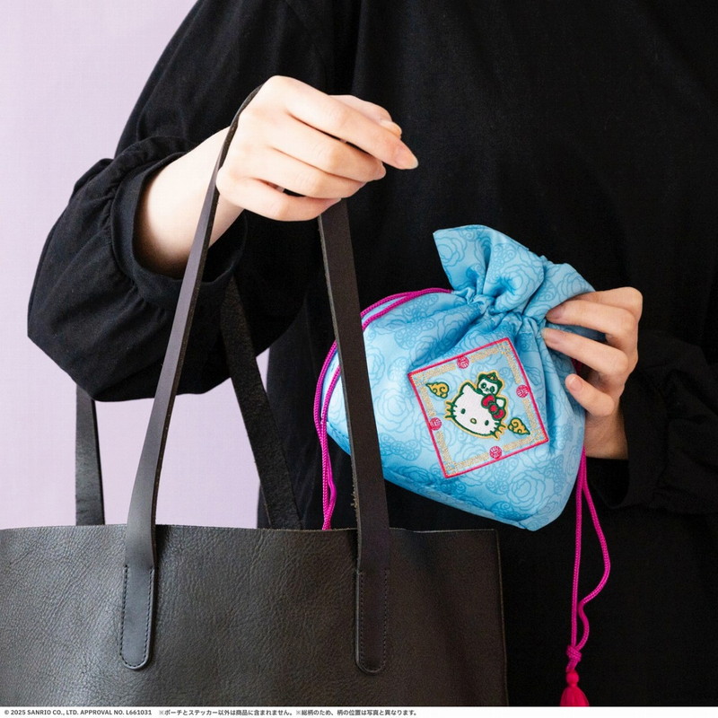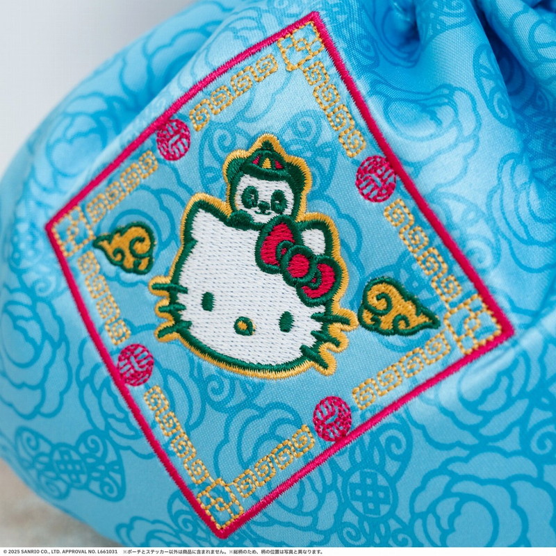 「ハローキティ 飯店」のデザインを使用した、豪華な刺繍がポイントのきんちゃくポーチができました!