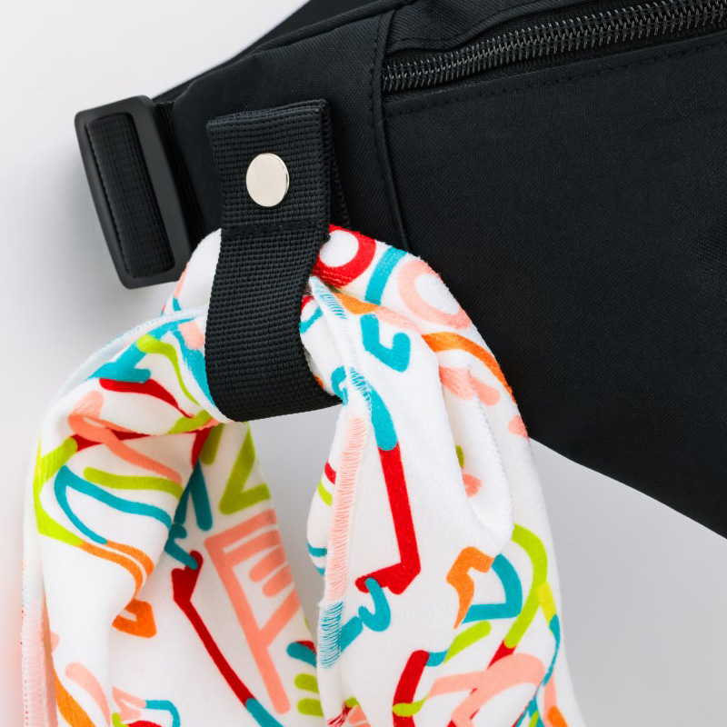 さらに、タオルホルダーやDカンなど、使いやすさとカスタム性をしっかり押さえたポイントも満載。ボディは男女問わず使いやすいブラックで、裏地はバッグの中が見やすいグレーに仕上げました。