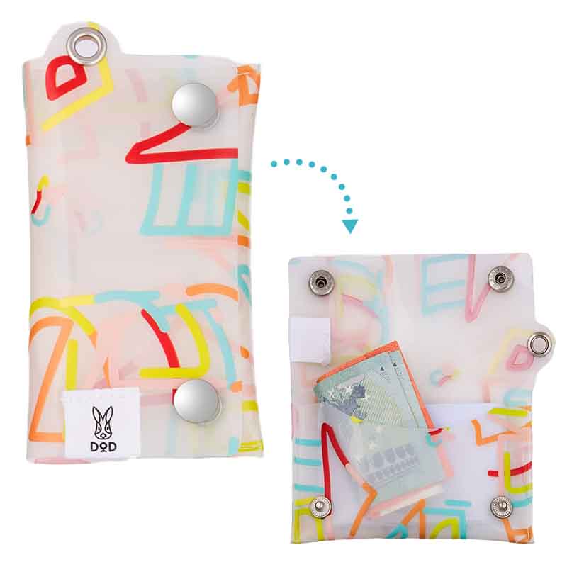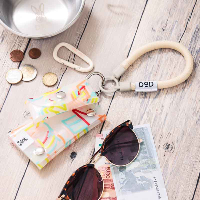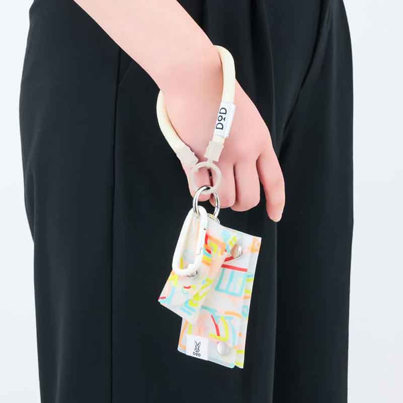 DODのテントとうさぎをモチーフにしたオリジナル柄のPVCウォレット&コインケースに、カラビナ、ホルダーリング、ストラップを加えた豪華5点セット!