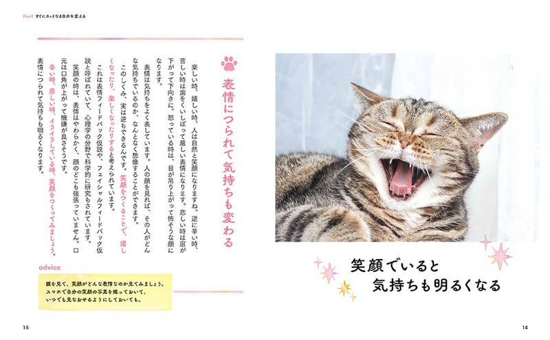 クスッと笑えるようなユニークでかわいいネコの写真が数多く添えられていて、楽しく読み進められます。
