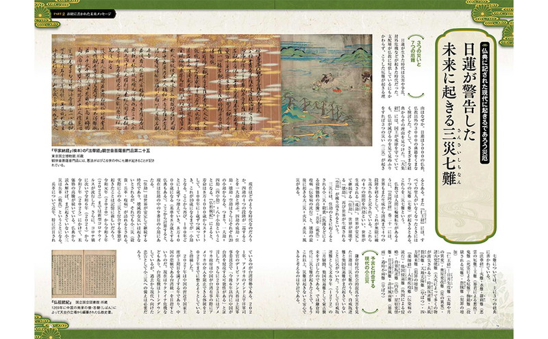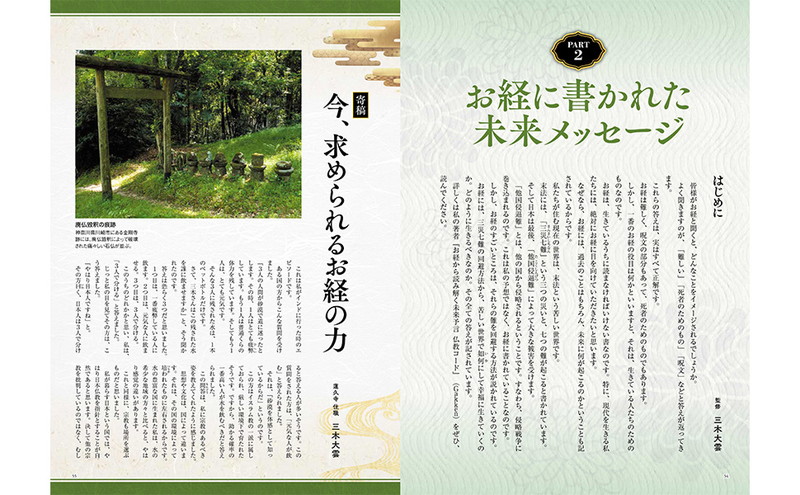 PART2では、『法華経』を中心に、お経に書かれた未来や日常生活への取り入れ方を紹介します。知るとおもしろく、暮らしに役立つお経の世界をご案内します。