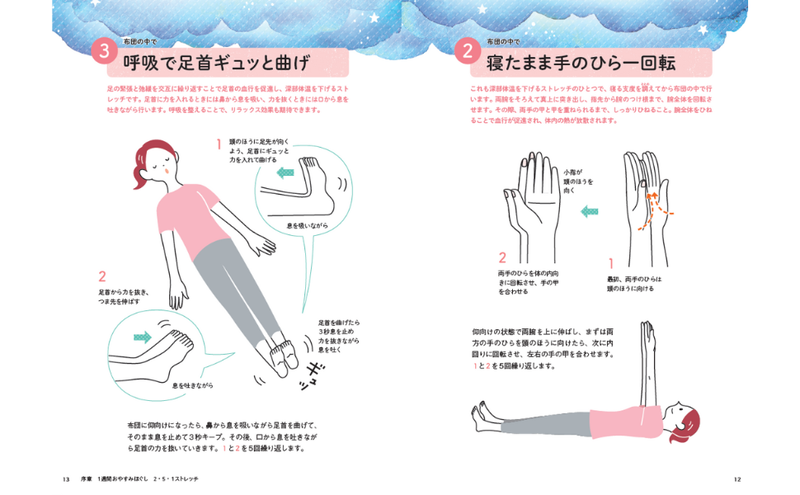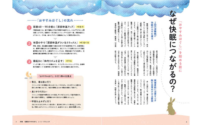 ストレッチは各1分間ずつだけでOK。本誌のメソッドを通じて、脳と心をしっかりとリラックスさせる、質の良い睡眠を実現しましょう。