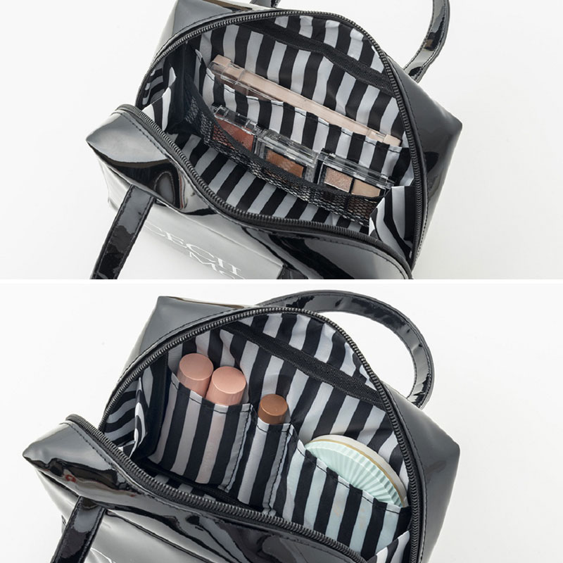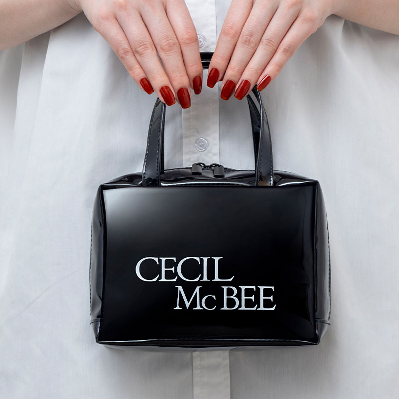 光沢のあるエナメル生地でセクシー&エレガントな当時の“セシル”らしさを演出。350mLのペットボトルが入るサイズで、ミニバッグとしても使えます。