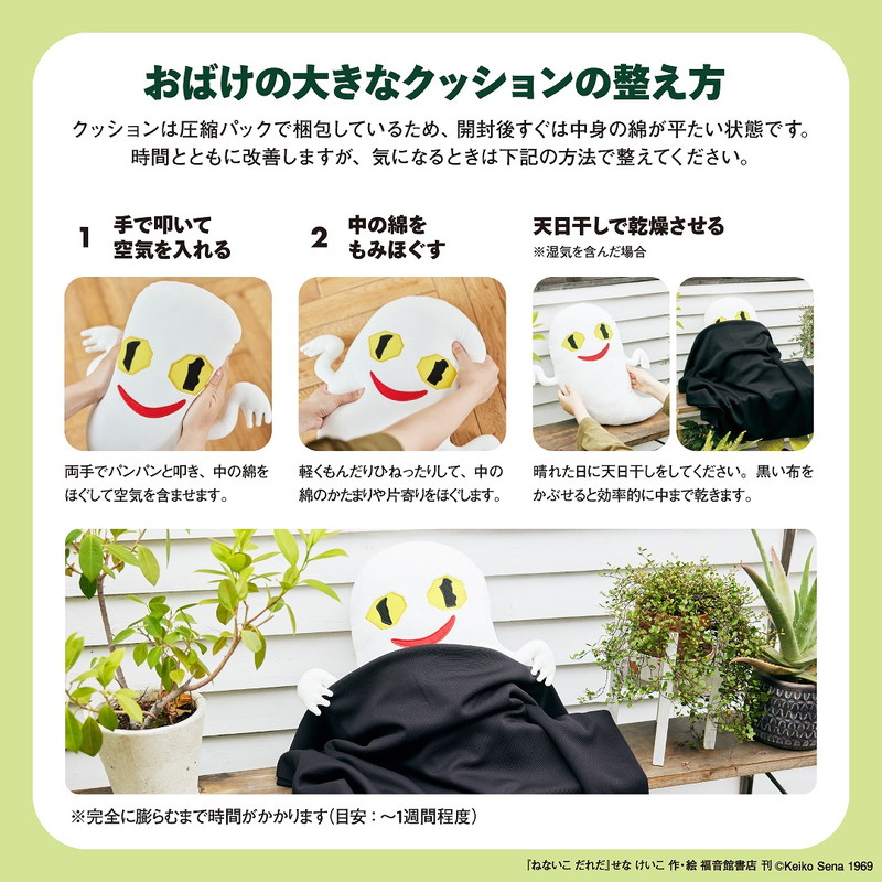 50年以上愛されている、せなけいこさんのロングセラー絵本『ねないこ だれだ』に登場するおばけの大きなクッションができました。