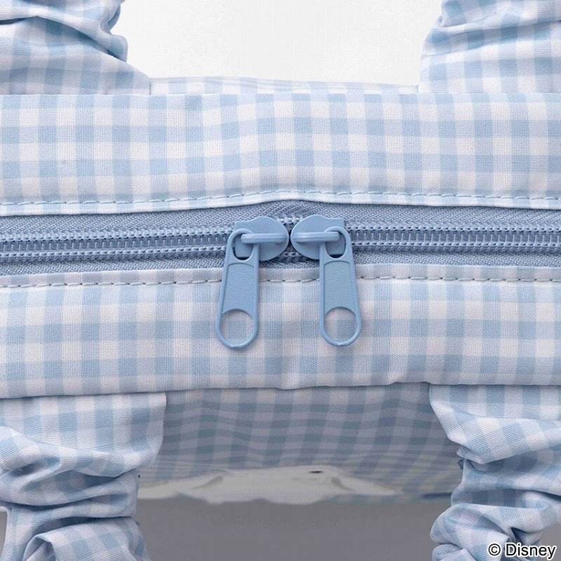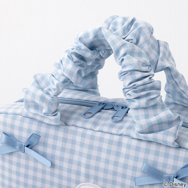 持ち手はフリルギャザー仕様で、かわいいだけでなく高級感も。内側にはメッシュポケットがあり、使い勝手も抜群です。