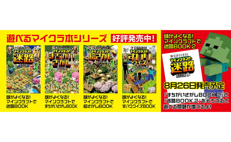ゲームさながらの立体的なイラストが大好評の「マイクラまちがいさがしBOOK」第2弾!
