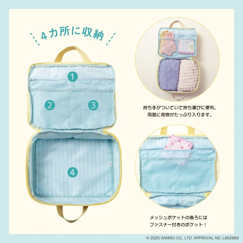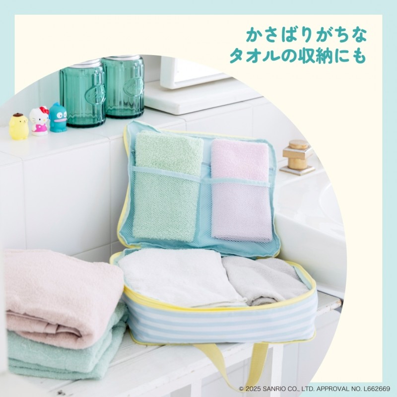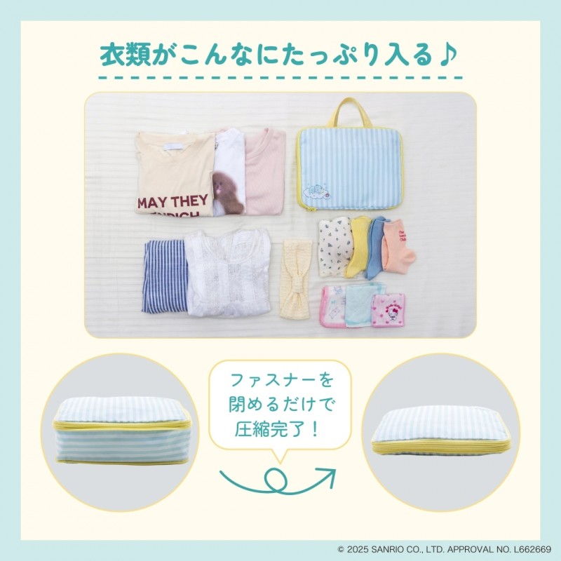 ファスナーを閉めるだけで荷物をコンパクトに圧縮できる、サンリオキャラクターの収納ポーチが登場!