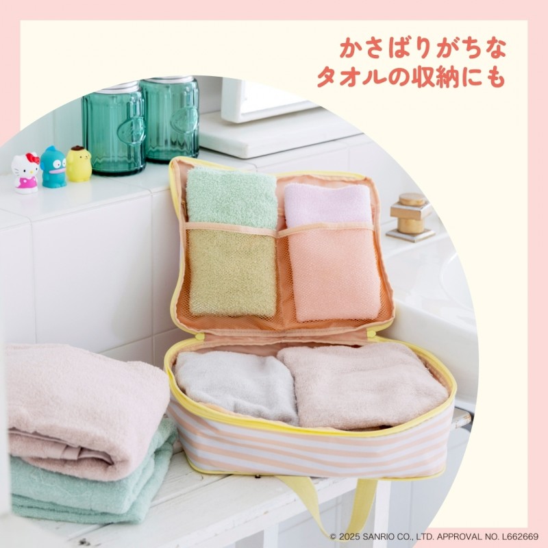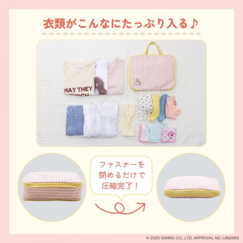 ファスナーを閉めるだけで荷物をコンパクトに圧縮できる、サンリオキャラクターの収納ポーチが登場!