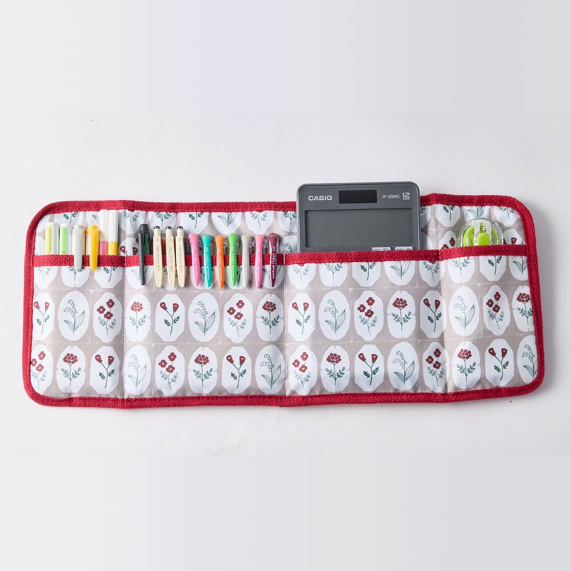★ペンをズラッと挿せたり、よく使う電卓や修正テープなどを収納できる「仕切りポケット」つき。