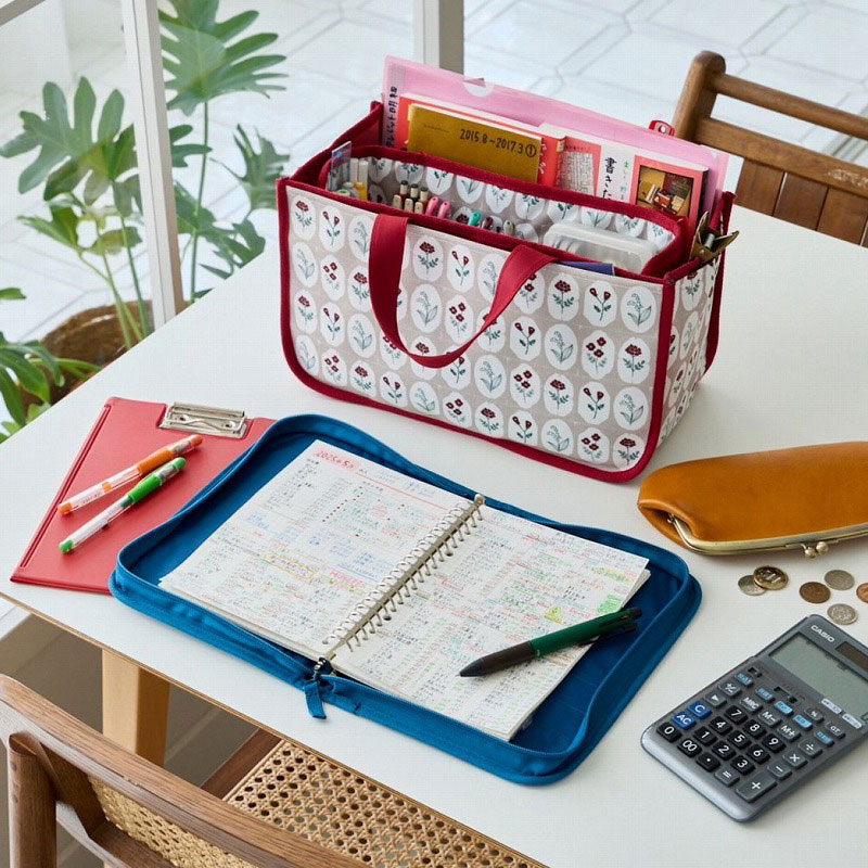 家計簿はもちろん、A4クリアファイル、レシート束、筆記具、現金、電卓……手書きだからこそ節約効果が高い「づんの家計簿」での家計管理に欠かせないアイテムを、スッキリきれいに収納できる便利なおうちトートです。