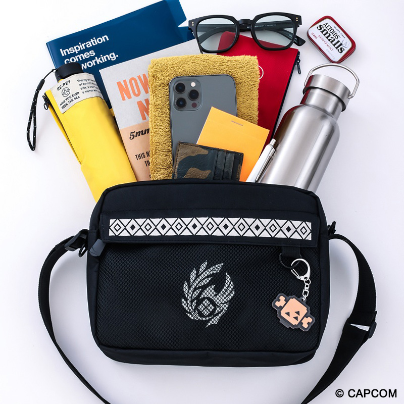 ショルダーバッグは男女問わず使えるシンプルなデザインで、背面にはタイトルロゴの刺繍が入っており、どちらを前にしても使える両A面仕様。複数のポケットやDカンなど、使いやすさにもこだわりました。