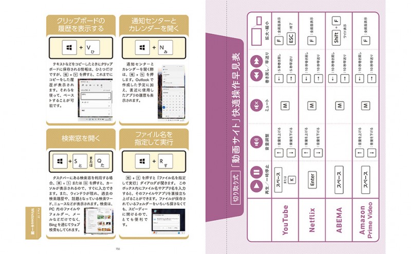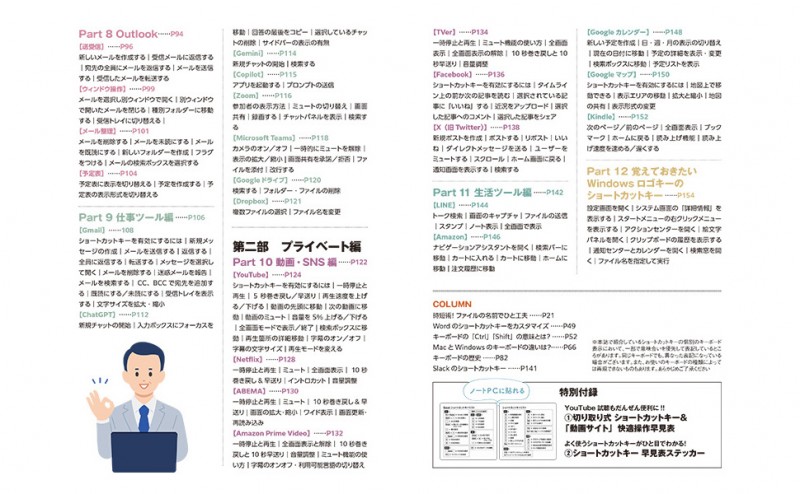 本誌は160ページの大ボリュームで、ふだん使いのショートカットキーを徹底紹介。付録として、厳選したショートカットキーをパッと手元で確認できるクリアタイプのシール付き。