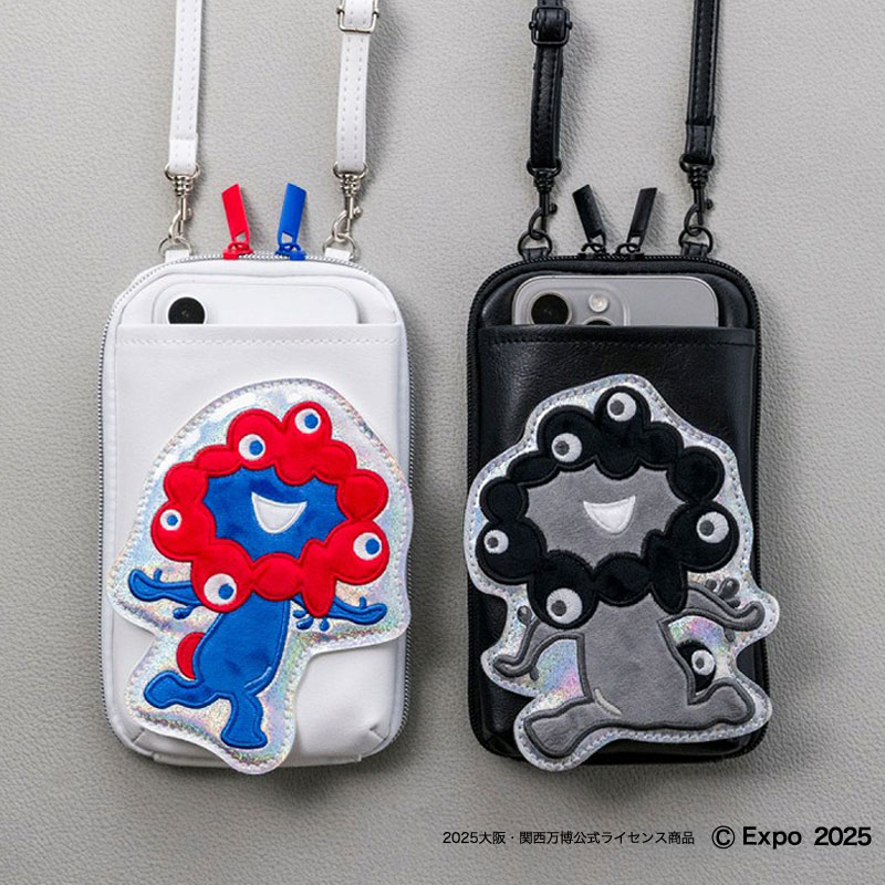 万博を彩った人気の立役者、公式キャラクター「ミャクミャク」のスマホポシェット第2弾が、モノクロバージョンで登場!