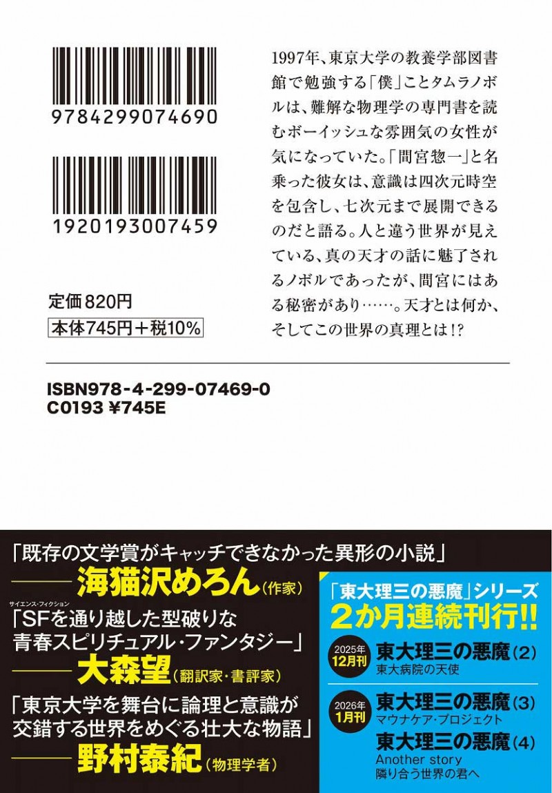 東京大学理科三類に通うノボルは、東大模試で異次元の点数を叩き出し、その後理三に合格した天才・間宮と出会う。彼は間宮と交流を深めていくうちに、天才の圧倒的な世界観に魅了され……。天才とは何か、この世界に隠された秘密とは? リアリティとフィクションが交錯しながら、旧約聖書について大胆な仮説が展開される圧倒的知的エンターテインメント。