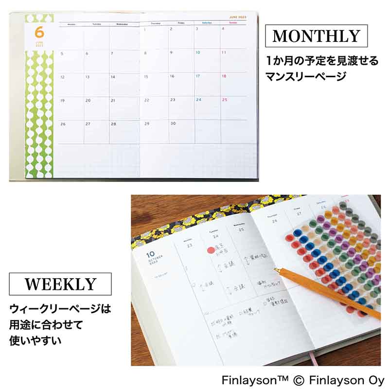 同時に発売予定の2023年4月号と同じく、Finlaysonとのコラボ付録がついてくる『リンネル』4月号増刊。こちらの付録は2023年3月始まりのスケジュール帳です。