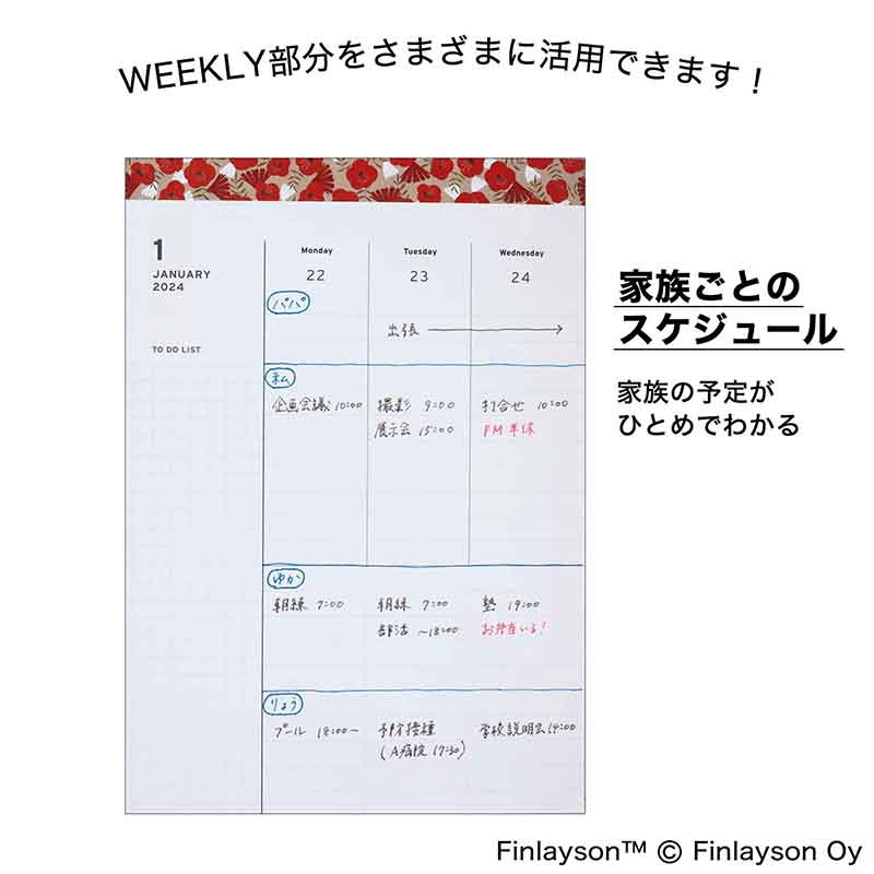 ちなみに、マンスリーページ&ウィークリーページの柄は月替わり。1年間で12種類もの柄が目を楽しませてくれます。