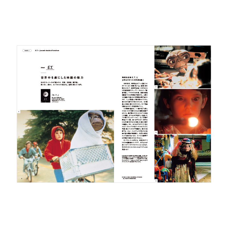 映画公開から36年以上経ちながらも、多くの人々に愛され続けている名作『E.T.』と、人気ブランド「ジャーナル スタンダード」が手がけるインテリアブランド「ジャーナル スタンダード ファニチャー」とのコラボが実現!インテリアに役立つ収納トートバッグができました。ジャーナル スタンダード ファニチャーが提案する収納トートの活用術が満載のほか、映画を振り返るページも収録。おしゃれな収納トートバッグで、見せる収納を楽しんで!