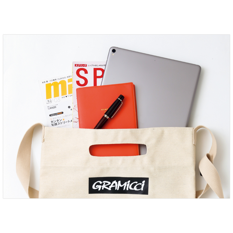 カリフォルニア発の人気アウトドアブランド「グラミチ」“初”となるオフィシャル本が登場!本誌限定アイテムは、ユニセックスで使える2WAYバッグ。厚手のキャンバス風素材に、グラミチのボックスロゴをオン。トレンド感あふれるデザインに仕上げました。ショルダーストラップはアジャスター付きでサイズ調節もOK!ショルダーストラップの端にはオリジナルタグを縫い付け、グラミチらしさを演出しました。ショルダー&手持ちの2WAYで使えるのでシーンにあわせて使い分けて。アウトドアや屋外イベントなど、これからの季節にぴったりのアイテムをお見逃しなく!